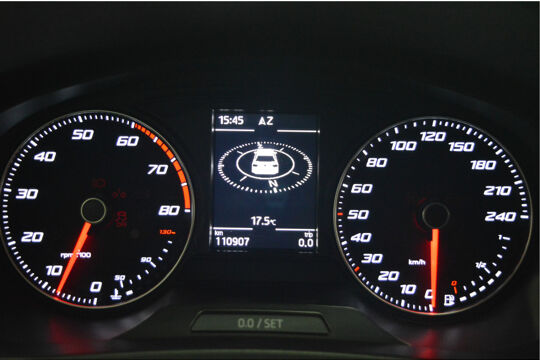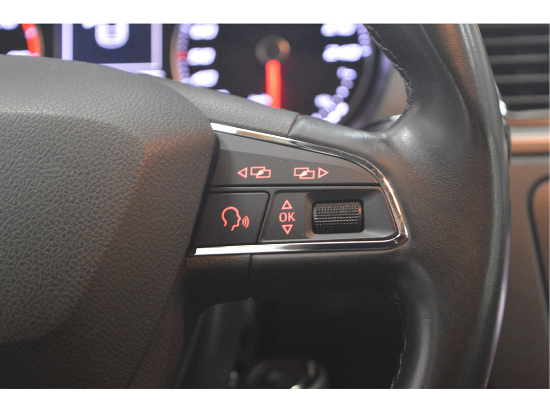 Het navigatiesysteem brengt u soepel en vlot naar uw bestemming. Natuurlijk is er ook electronic climate control aanwezig. Met een druk op de knop verandert u het volume of het zenderstation met de audiobediening op het stuurwiel. Inparkeren en uitparkeren kost geen enkele moeite dankzij de parkeersensoren. Het luxeniveau in deze SEAT is niet alleen gericht op comfort, maar ook op uw veiligheid. Tal van sensoren helpen u om de omgeving in de gaten te houden. De automatisch inschakelbare verlichting zorgt dat automatisch de verlichting wordt ingeschakeld als het donker wordt, wat bijvoorbeeld in tunnels erg handig is. En de regensensor zet de ruitenwissers aan zonder dat u eraan hoeft te denken. Deze SEAT is voorzien van cruise control, automatisch dimmende binnenspiegel, centrale deurvergrendeling met afstandsbediening, boordcomputer en verstelbaar stuur.