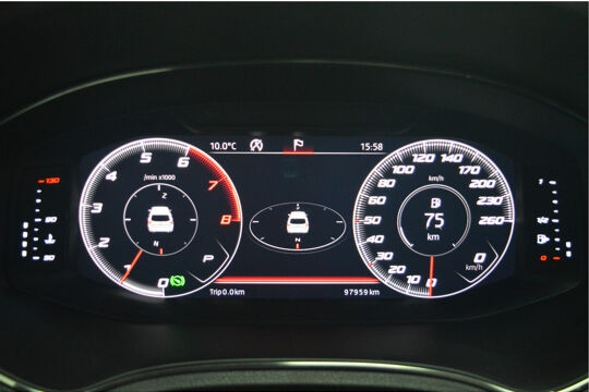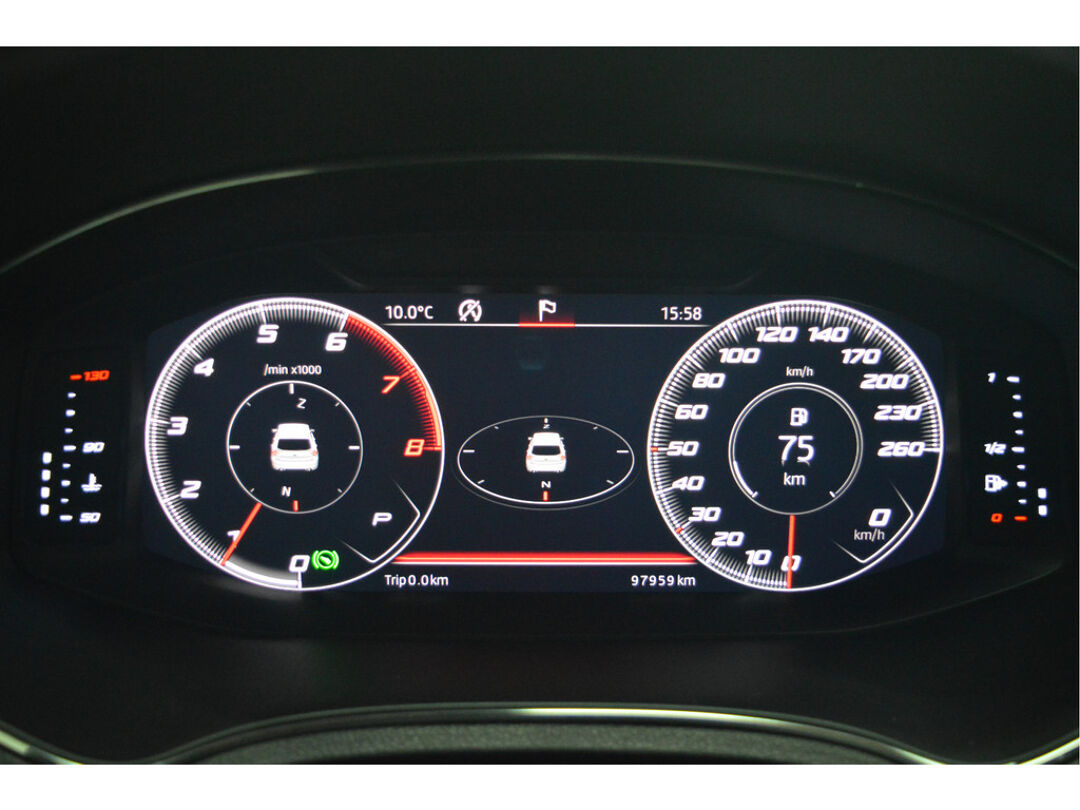 Overzicht, informatie en functionaliteit: dat biedt het digitale dashboard. Strak inparkeren wordt een fluitje van een cent door de achteruitrijcamera. Adaptive cruise control is een comfortabele en veilige optie. Het systeem reguleert de snelheid en houdt automatisch afstand tot uw voorligger. Klik de smartphone in de houder en de draadloze telefoonlader zorgt voor een volle accu. De automatische airconditioning zorgt voor een behaaglijk klimaat in de auto. Natuurlijk behoren dashboard met spraakbediening, full map navigatiesysteem, DAB ontvangst, regensensor, keyless entry en automatisch dimmende binnenspiegel ook tot de uitrusting van deze complete auto.