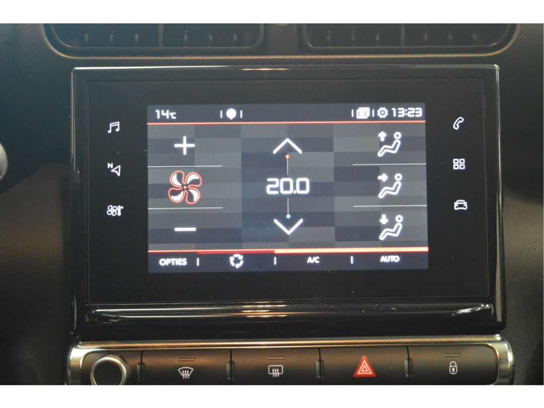 Oliepeil, bandenspanning, sloten en andere functies zijn via een speciale app overal te checken dankzij Connected Services. In deze C3 Aircross vindt u niet alleen schakelaars op het stuur om het full map navigatiesysteem te bedienen en het audiosysteem met DAB-ontvangst, maar er is ook spraakbediening. Maak uw smartphone echt draadloos, ook bij het opladen. Met de draadloze telefoonlader. Aan boord van deze Citroën C3 Aircross is een achteropkomend verkeer waarschuwing voor extra veiligheid. Of het buiten nu warm is of koud, dankzij automatische airconditioning is het binnen altijd behaaglijk. De Citroën is standaard voorzien van: parkeersensoren achter, regensensor, cruise control, automatisch dimmende binnenspiegel, lederen stuur en centrale deurvergrendeling met afstandsbediening.