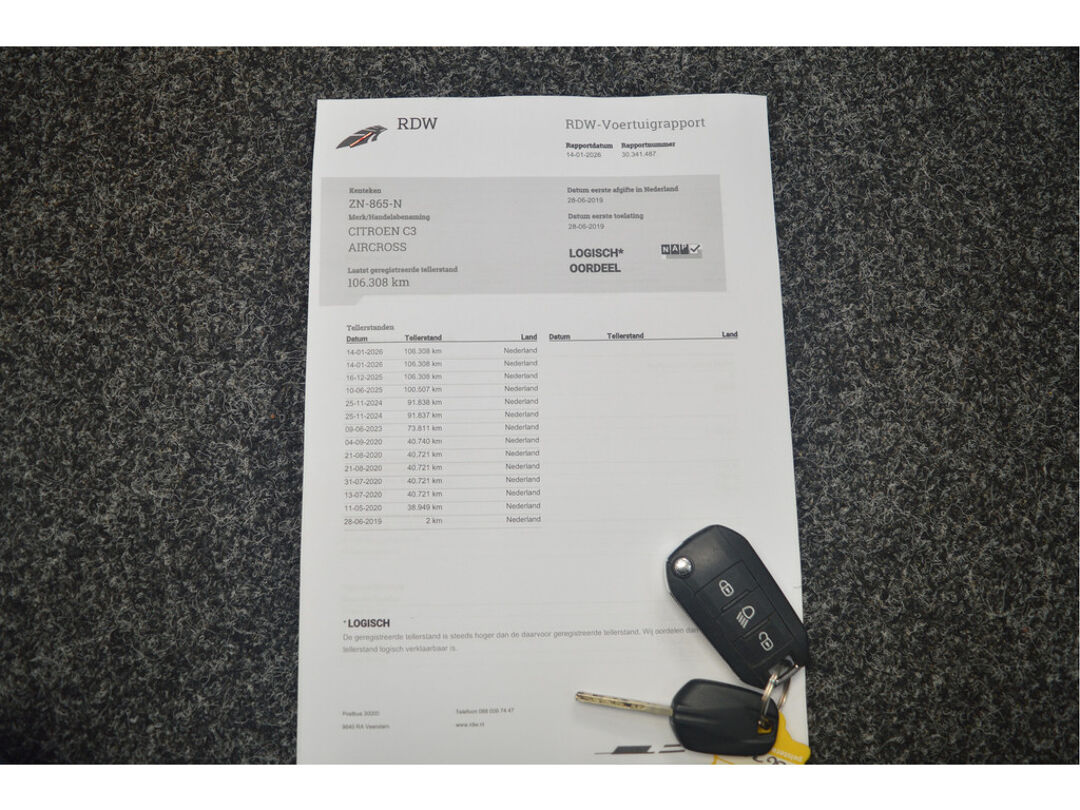 Bij een goede occasion als deze hoort natuurlijk ook een tellerrapport van Nationale Autopas. Bent u nieuwsgierig naar deze Citroën C3 Aircross? Laat het ons dan snel weten.
