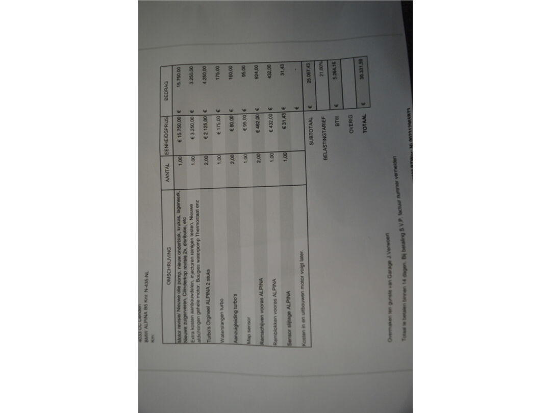Bij het ontwerpen van de Alpina BMW ALPINA B5 BITURBO stonden uw comfort en uw veiligheid centraal. Met een achtcilinder benzinemotor en een automatische transmissie beschikt deze Alpina over uitstekende prestaties. Misschien bent u niet veeleisend, maar na dit elektrisch bediende glazen panorama dak en het lederen interieur wilt u nooit anders meer. Neem plaats op de comfortabele stoelen. Dankzij de elektrische bediening en het geheugen is het eenvoudig om hierin de beste zitpositie te vinden. De uitmonstering van deze auto wordt gecompleteerd door onder meer 20 inch lichtmetalen velgen, LED-dagrijverlichting, zwarte hemelbekleding en getint glas.