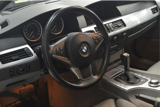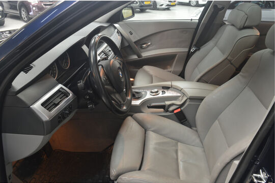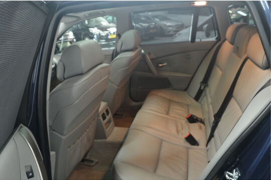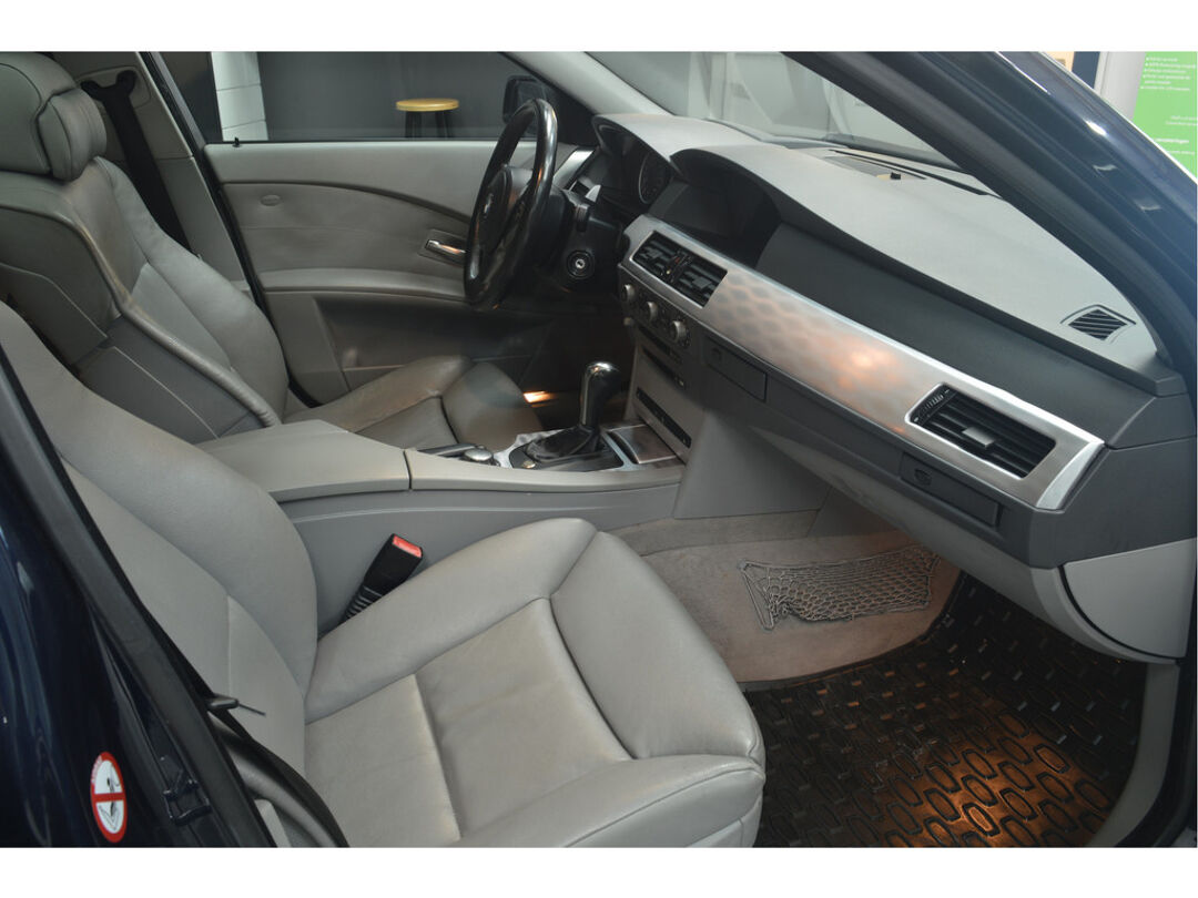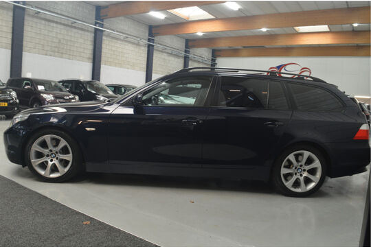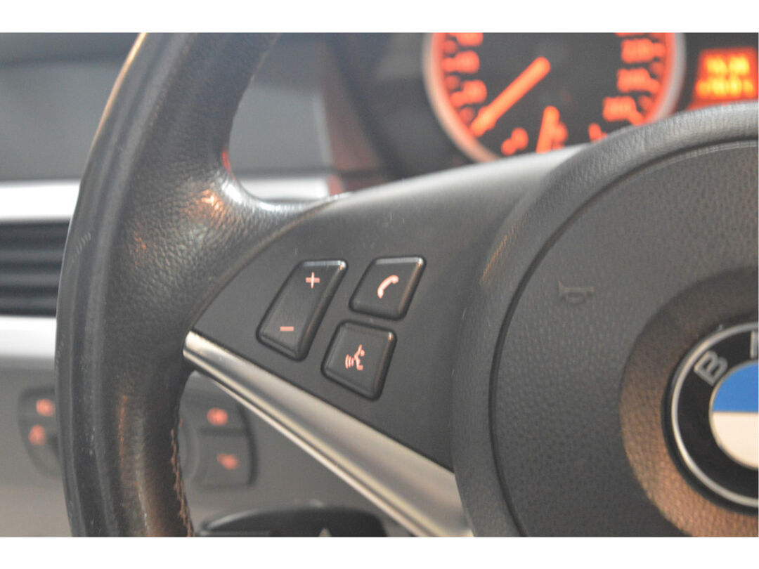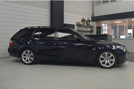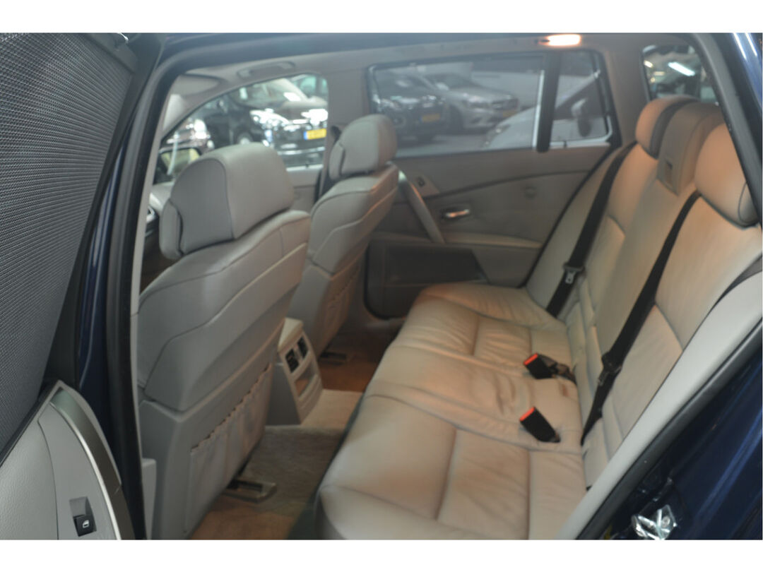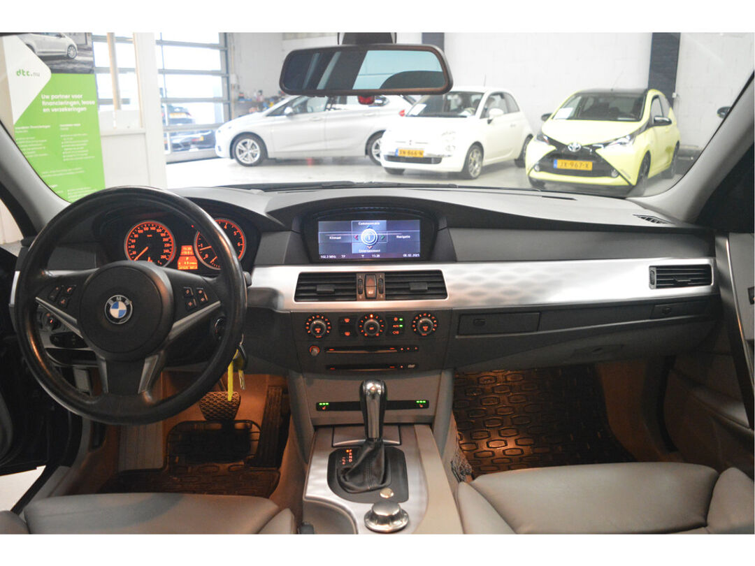 Het navigatiesysteem brengt u soepel en vlot naar uw bestemming. Tot de standaard uitrusting van deze auto hoort ook automatische airconditioning. Liever gepiep dan gekraak? Dan zult u blij zijn met de aanwezige parkeersensoren! Deze BMW 5-serie Touring maakt het rijden graag gemakkelijk. Daarom verzorgt de regensensor de mate van ruitreiniging die de ruitenwissers moeten leveren bij neerslag. Natuurlijk is er ook cruise control aan boord, waarmee u meer ontspannen en zuiniger rijdt. Extra opties op deze auto zijn: automatisch dimmende binnenspiegel, lederen stuur, centrale deurvergrendeling met afstandsbediening en boordcomputer.