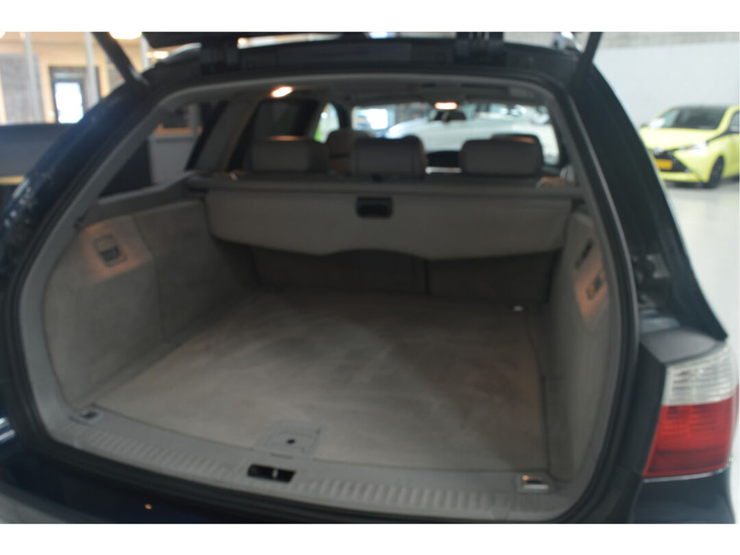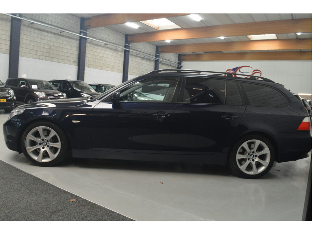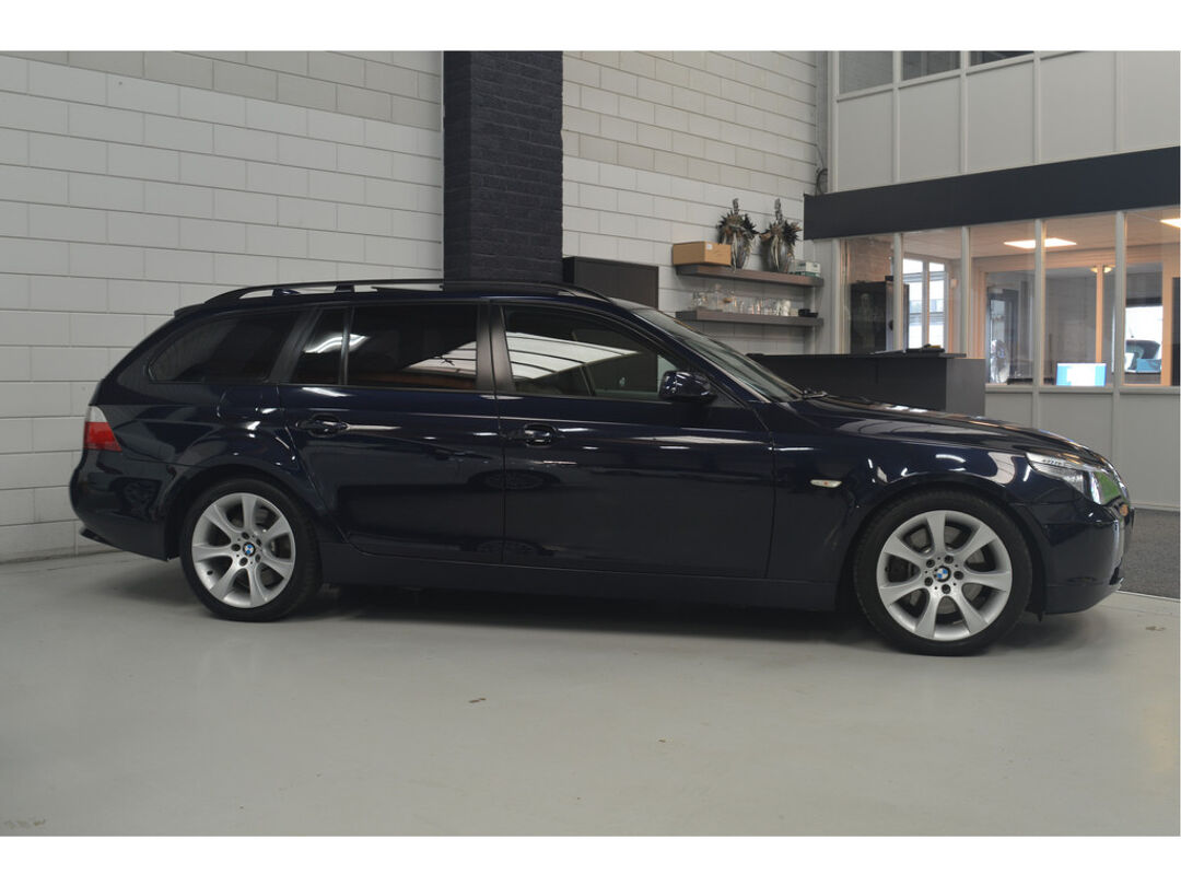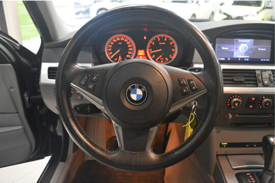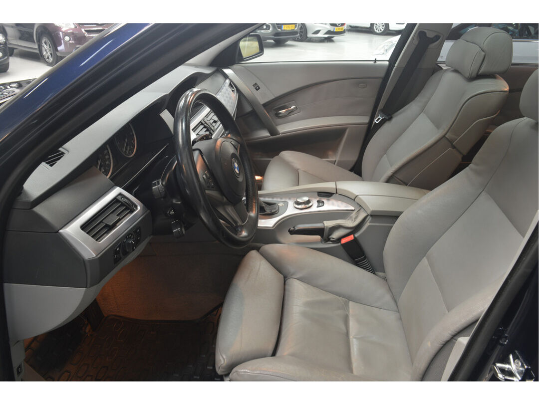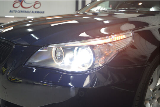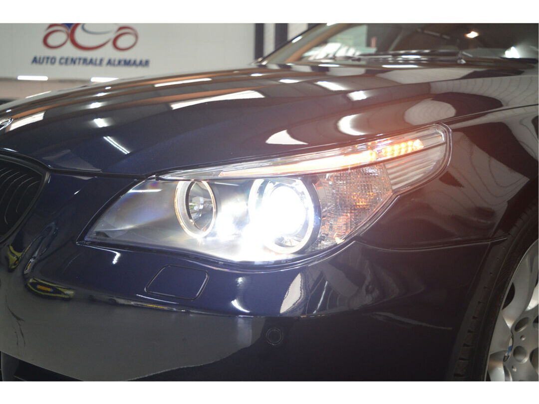 Het navigatiesysteem brengt u soepel en vlot naar uw bestemming. Tot de standaard uitrusting van deze auto hoort ook automatische airconditioning. Liever gepiep dan gekraak? Dan zult u blij zijn met de aanwezige parkeersensoren! Deze BMW 5-serie Touring maakt het rijden graag gemakkelijk. Daarom verzorgt de regensensor de mate van ruitreiniging die de ruitenwissers moeten leveren bij neerslag. Natuurlijk is er ook cruise control aan boord, waarmee u meer ontspannen en zuiniger rijdt. Extra opties op deze auto zijn: automatisch dimmende binnenspiegel, lederen stuur, centrale deurvergrendeling met afstandsbediening en boordcomputer.